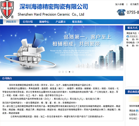 網站建設公司,做網站優化關鍵詞排名SEO,營銷型,手機網站建設,響應式,品牌型,電商/門戶,外貿型網站建設. 深圳市海德精密陶瓷有限公司是一家開發、設計、生產、銷售先進精密陶瓷產品的公司。地址:深圳市西麗鎮