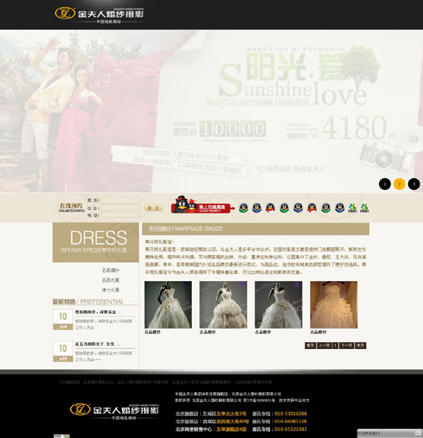 婚紗攝影網站建設公司,做網站優化關鍵詞排名SEO,營銷型,手機網站建設,響應式,品牌型,電商/門戶,婚紗攝影外貿型網站建設. 金夫人婚紗影樓不絕堅持走佳構化蹊徑,積極生長品牌文化,始終貫徹我們的十大上風:榮獲中國貿易光榮企業、中國照相名店、中國婚紗照相服務滿足十佳誠信單元、群英會婚紗行業良好結果獎、精力文明良好團體、斲喪者信得過企業、群英會婚紗行業特殊孝敬獎等殊榮。不絕開闊婚紗照相新民風,引領風騷,獨樹氣勢氣勢!