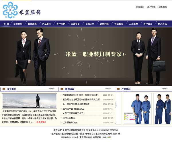 阻燃服、防靜電服、防酸堿服、防輻射服網站建設公司,做網站優化關鍵詞排名SEO,營銷型,手機網站建設,響應式,品牌型,電商/門戶,阻燃服、防靜電服、防酸堿服、防輻射服外貿型網站建設. 米藍團體總部位于浙江溫州,2011年投資叁仟萬元開始進軍中國西部職業裝市場,在重慶創建了重慶米藍衣飾有限公司,專業生產和販賣洋裝,襯衫,領帶,勞保事故服(阻燃服、防靜電服、防酸堿服、防輻射服),廣告衫等職業妝扮;格式新奇,工藝考究,實用性強,得到相助企業劃一好評。