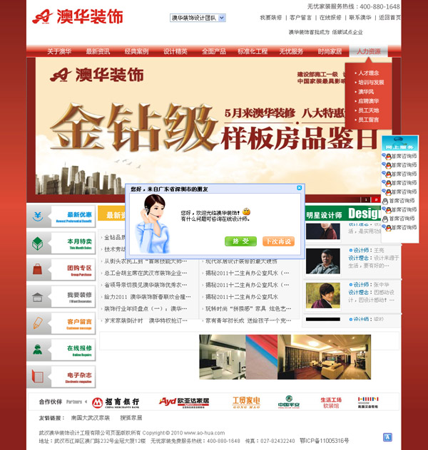 2004年澳華裝飾得到“天下構筑裝飾行業AAA級誠信企業”稱謂;2005年澳華裝飾入選中國度裝最具影響力十大品牌;2006年創建了武漢市首家范疇最大的家居印象館;2007年樂成推行了武漢裝飾行業內的第一套專門針搪塞施工流程的尺度化管理體系;2008年公司全面實驗“風致服務 滿足100”的生長戰略;2009年,澳華3457風致服務體系極新宣布,助推服務全面升級;2010年初,澳華裝飾斥資千萬打造武漢家裝業界唯逐一個自有型別墅樣板樓,開創高端操持新業態,同年7月,武漢第一個家裝操持會所--澳華裝飾操持會所創建……